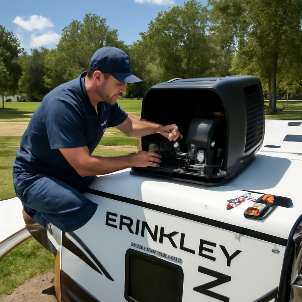 Restore power to your RV’s electrical system and turn on the AC unit, listening for smooth fan motor operation and feeling for cold air output. Allow the system to run for 15-20 minutes while monitoring the inlet and outlet temperatures with your infrared thermometer to confirm proper cooling function.