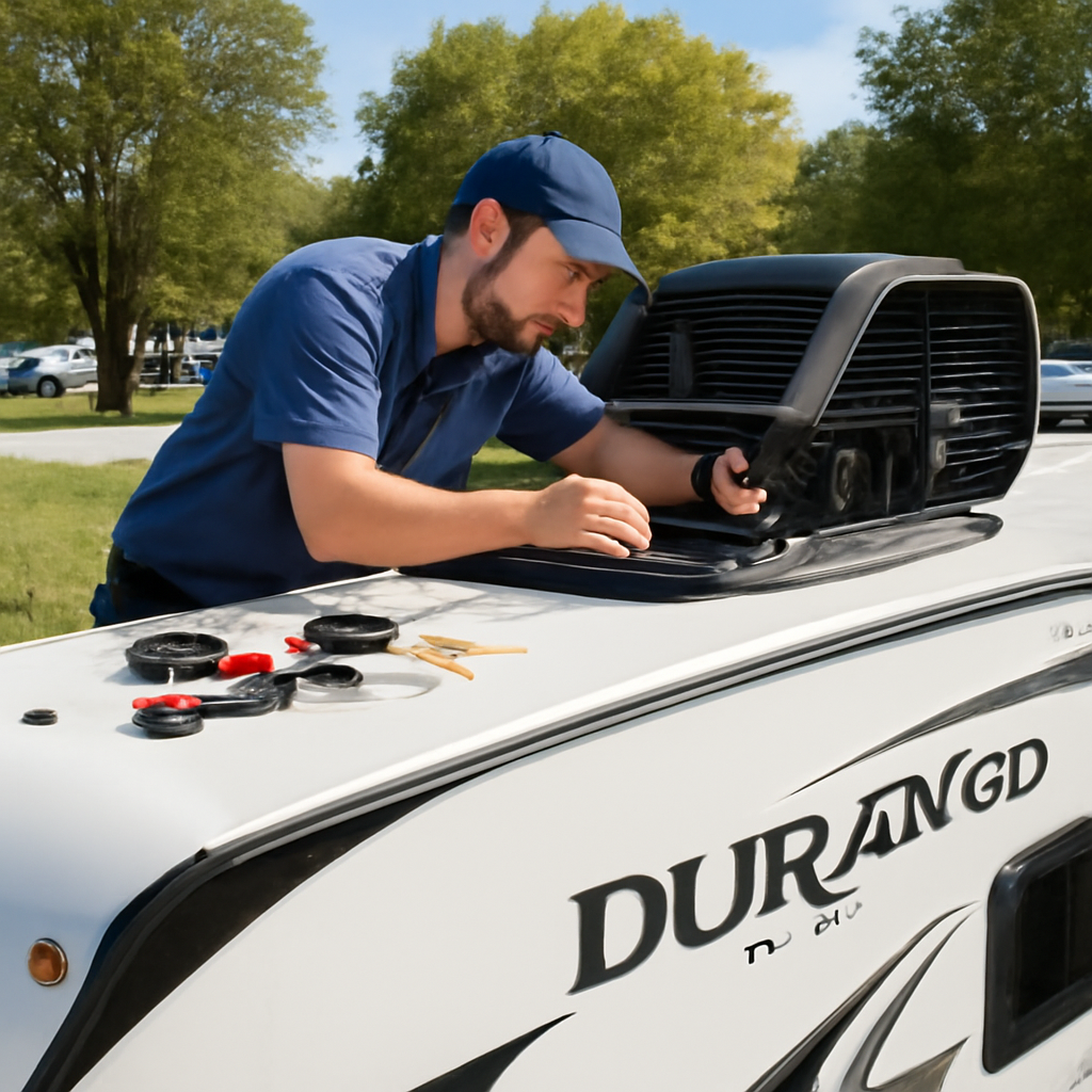 Start by identifying whether your KZ Durango’s AC is blowing warm air, making unusual noises, or failing to cool effectively—these symptoms often indicate capacitor or fan motor failure. Before beginning any work, disconnect your RV from all power sources and turn off the main breaker to prevent electrical shock and equipment damage.